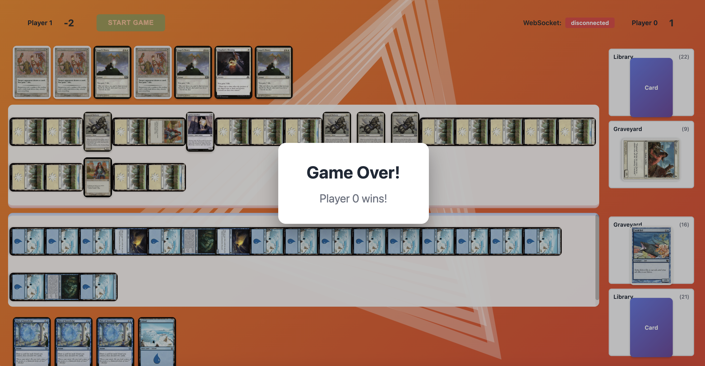 Somewhat referenced in the TypeScript snippet above, it’s possibly better to simulate Magic games than chess because you eventually draw out so it forces enough logic to be implemented to intentionally play the game (unlike playing random moves in chess which has a possibility of going on forever).